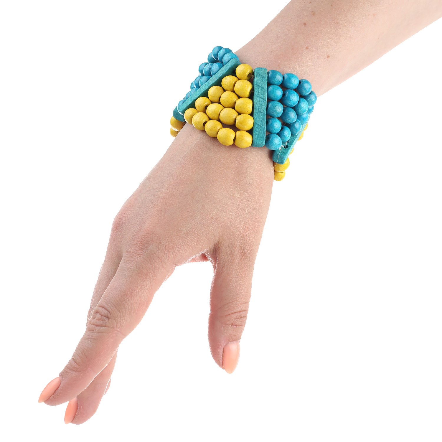 Браслет синьо-жовтий , виготовлений з натурального дерева.