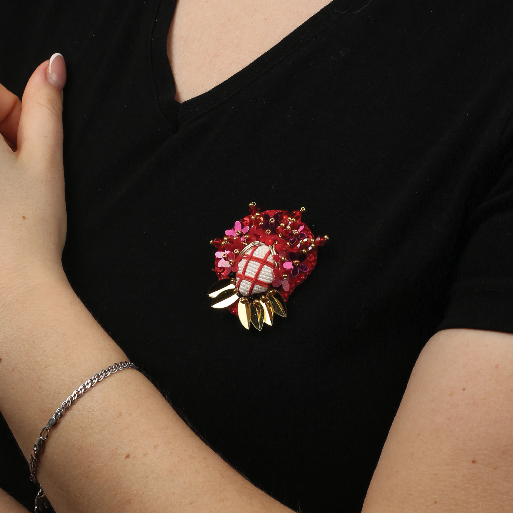 Брошка виготовлена в яскравому червоному кольорі доповнить Ваш як діловий, стриманий, святковий так і повсякденний образ. Стане відмінною прикрасою для пальта, піджака, плаття чи навіть Вашої сумочки. Вона виконана з високоякісного матеріалу з металевою защіпкою заді, яка прикріплена до кусочка шкіри. Якісна защіпка не потемніє з часом і не псуватиме одяг.