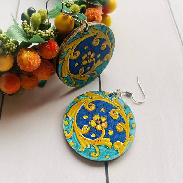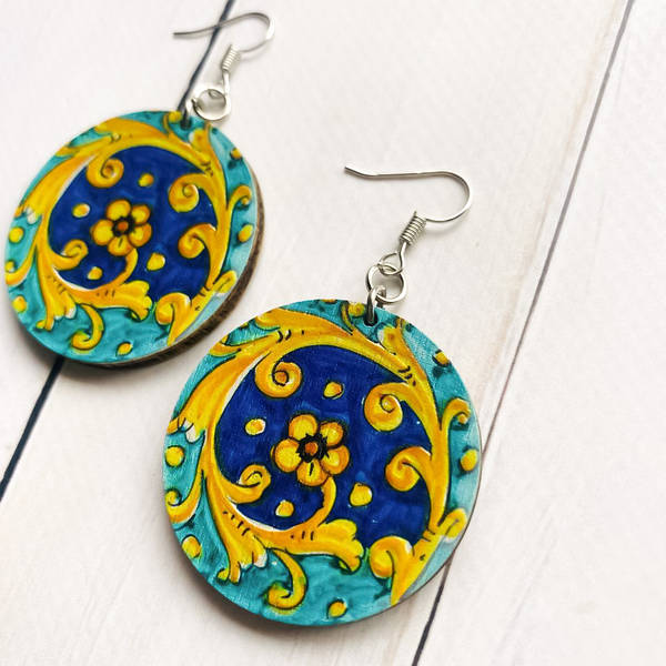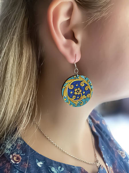 Дерев’яні сережки з розписом, ручна робота та якісна фурнітура