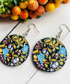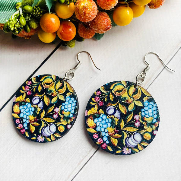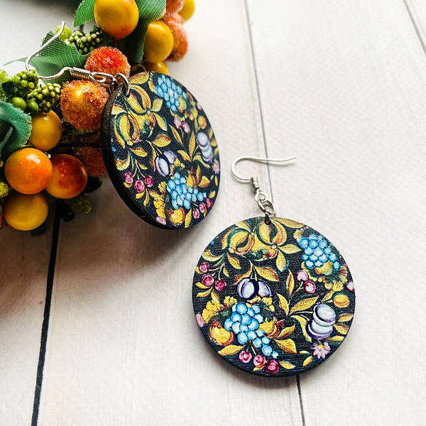 Дерев’яні сережки з розписом, ручна робота та якісна фурнітура