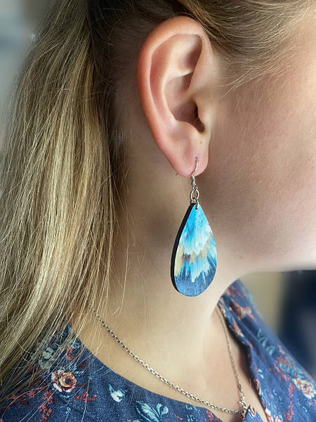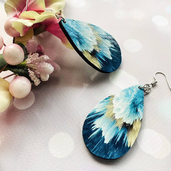 Дерев’яні сережки з розписом, ручна робота та якісна фурнітура