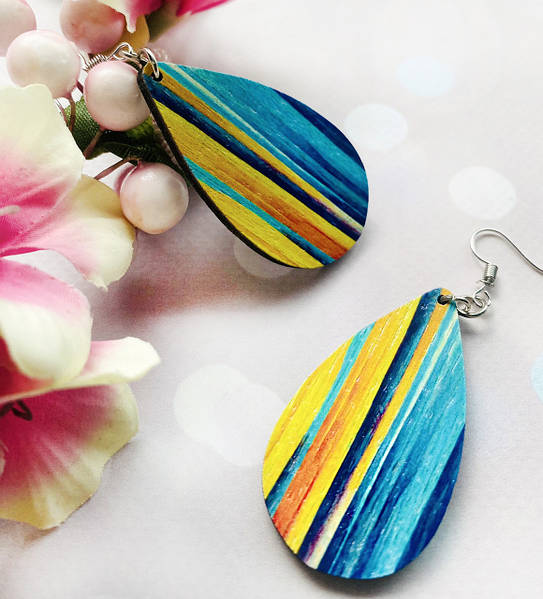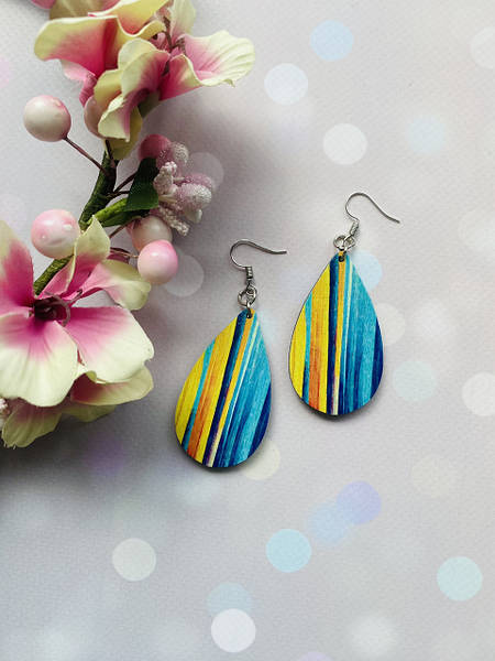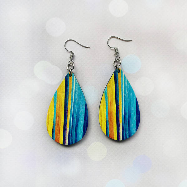 Дерев’яні сережки з розписом, ручна робота та якісна фурнітура