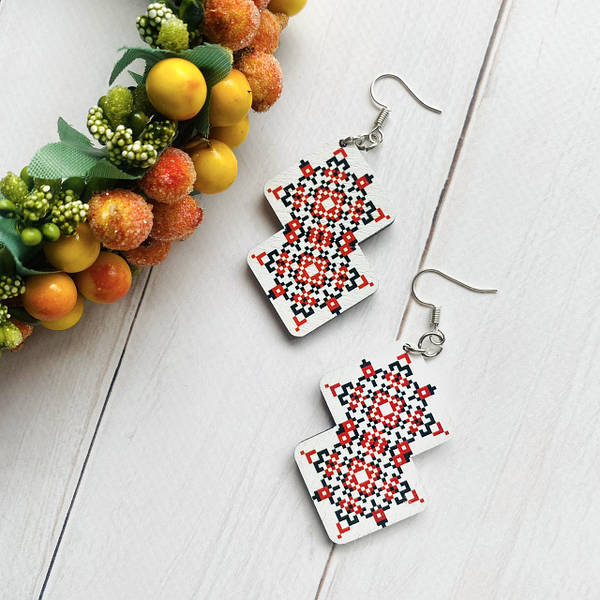 Дерев’яні сережки, ручна робота якісна фурнітура
