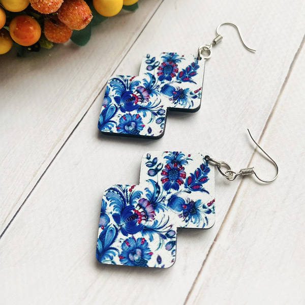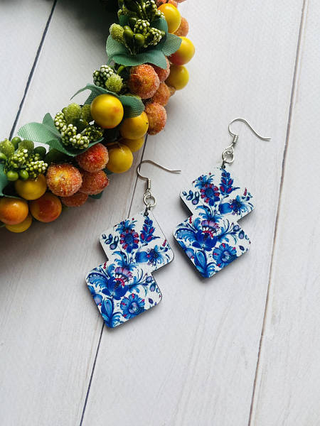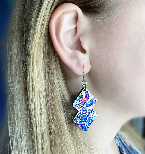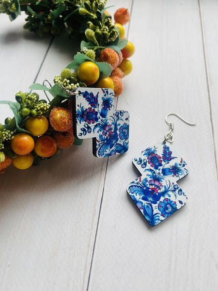 Дерев’яні сережки, ручна робота якісна фурнітура