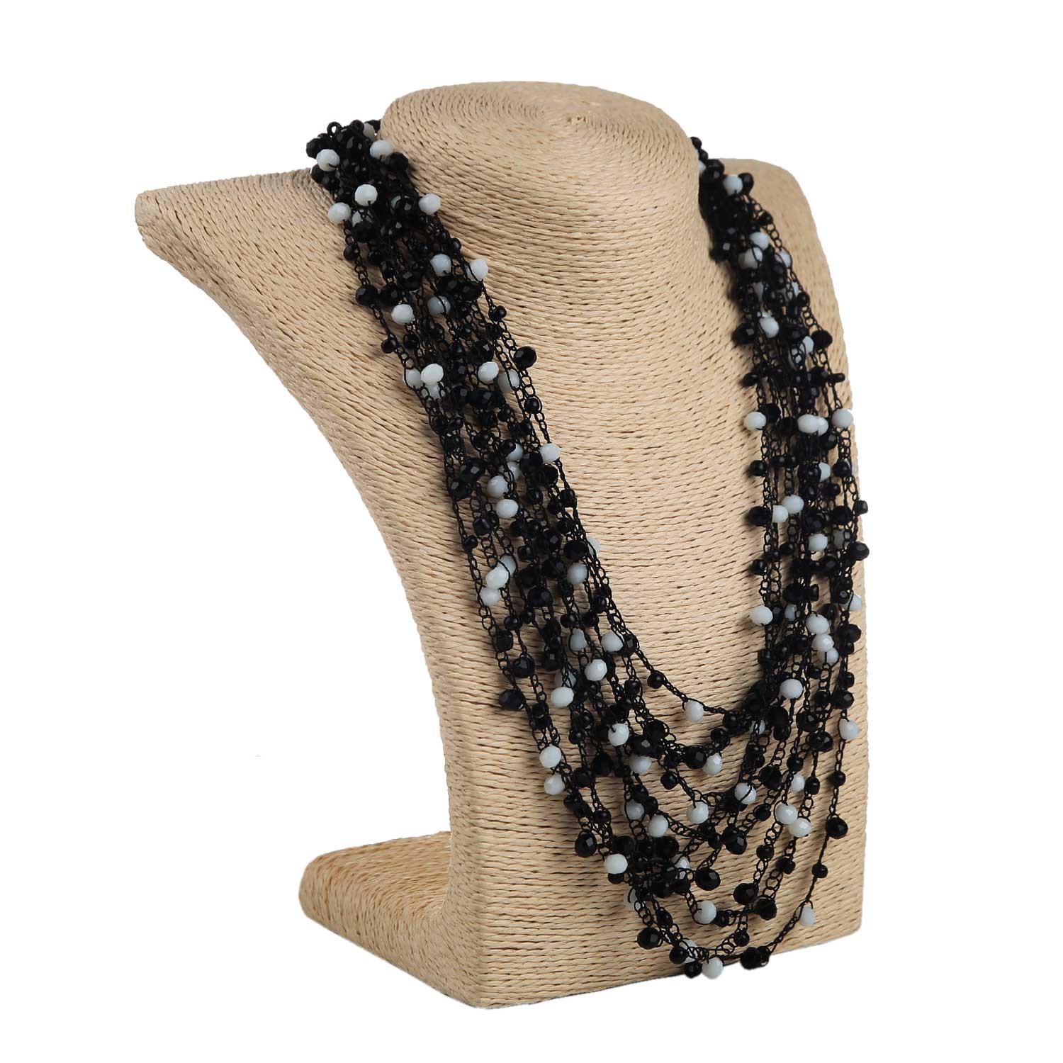 Кольє з бісеру-кришталю, чорно-біле