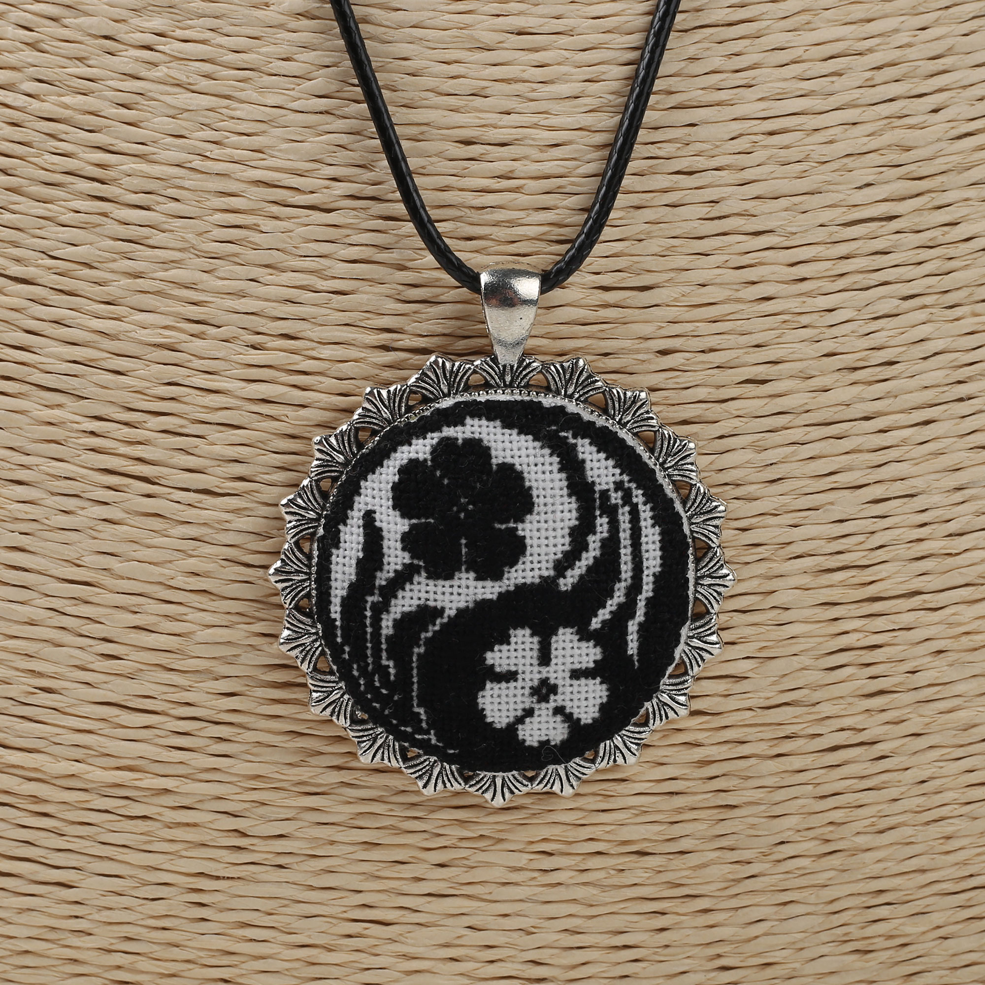 Матеріали-домоткане полотно, нитки DMC, фурнітура античне срібло .Виконаний у техніці мікро-вишивки.