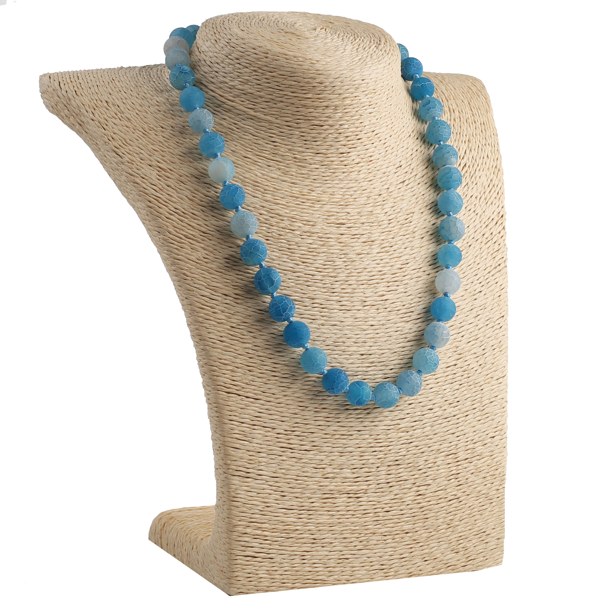 Кольє з натурального каміння агату блакитного 20 см (+ 3см. защіпка)