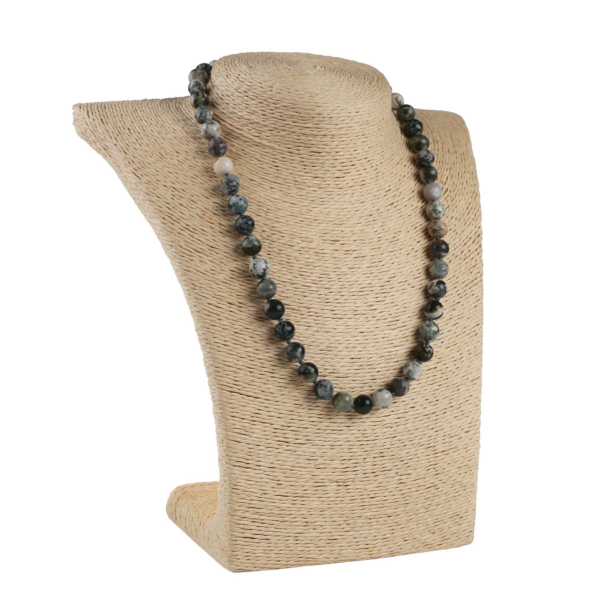 Кольє з натурального каміння агат-моховий темно-зелений 20 см (+ 3см. защіпка)
