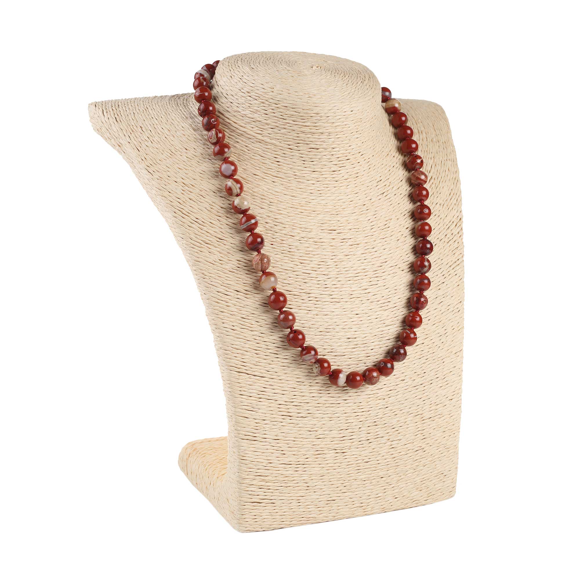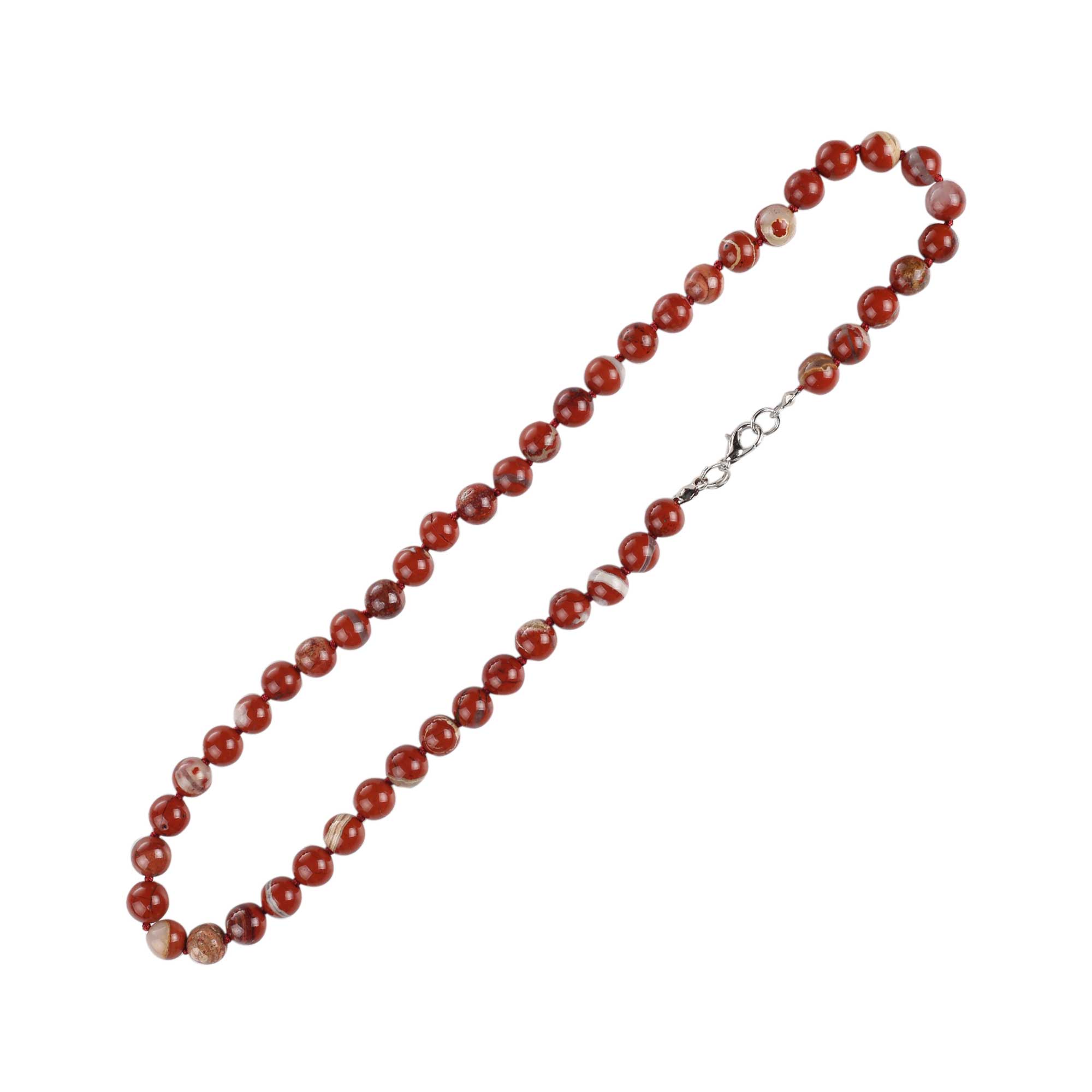 Кольє з натурального каміння яшма темно-червоне 20 см (+ 3см. защіпка)