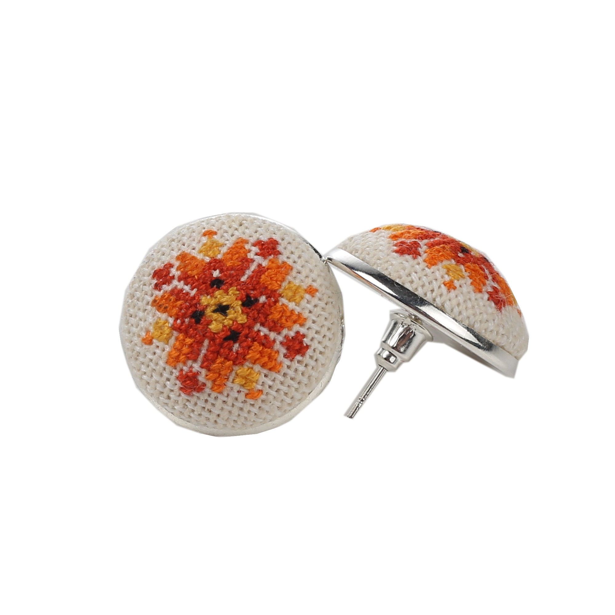 Діаметр 2 см. Матеріали-домоткане полотно, нитки DMC, фурнітура античне срібло .Виконані у техніці мікро-вишивки.