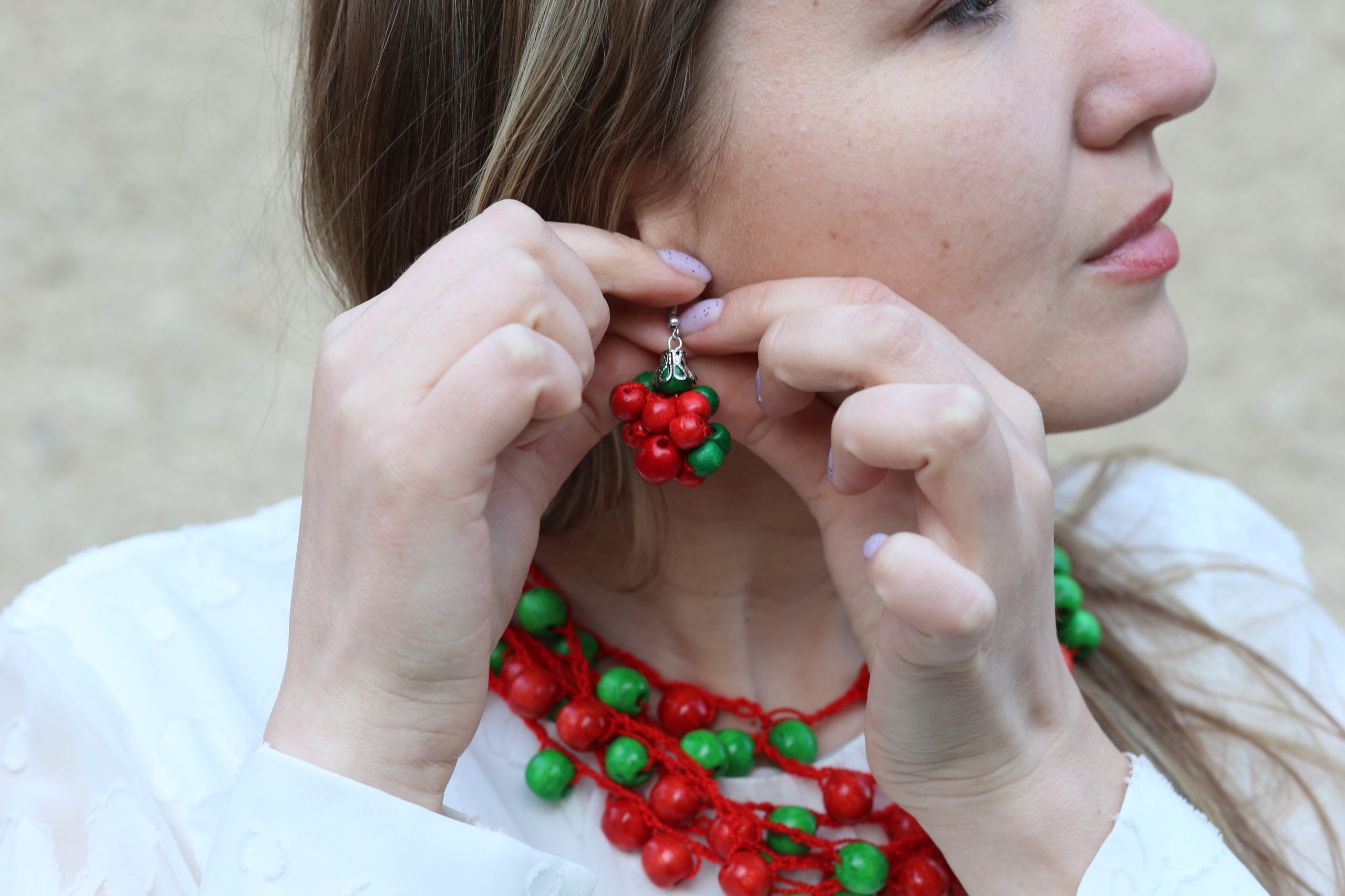 [contact-form-7 id="7042" title="Newsletter Vertical"]Сережки червоно-зелені, виготовлені з натурального дерева.
