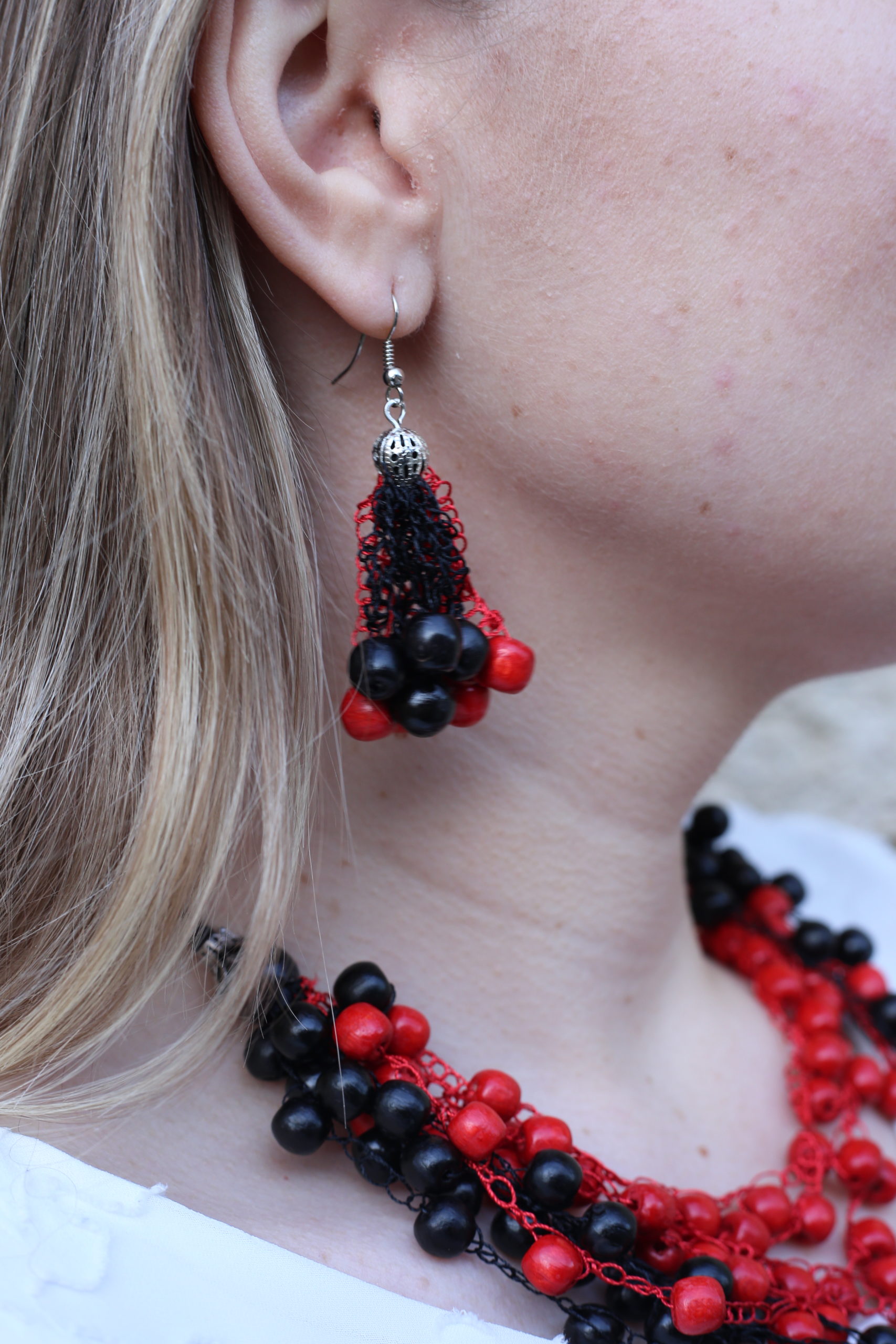[contact-form-7 id="7042" title="Newsletter Vertical"]Сережки червоно-чорні, виготовлені з натурального дерева.