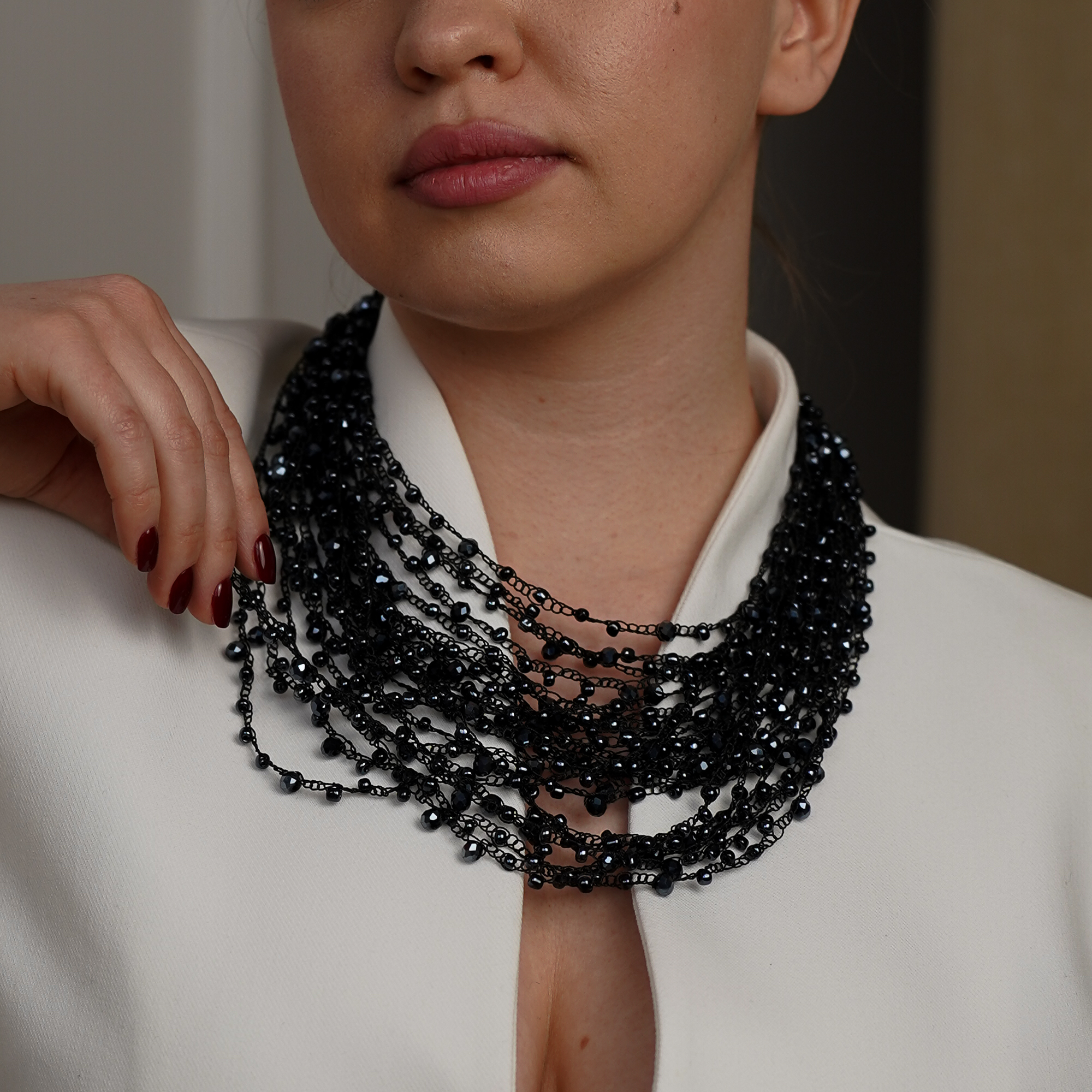 Матеріал – кришталь і бісер, що нанизані на шовкову нитку.